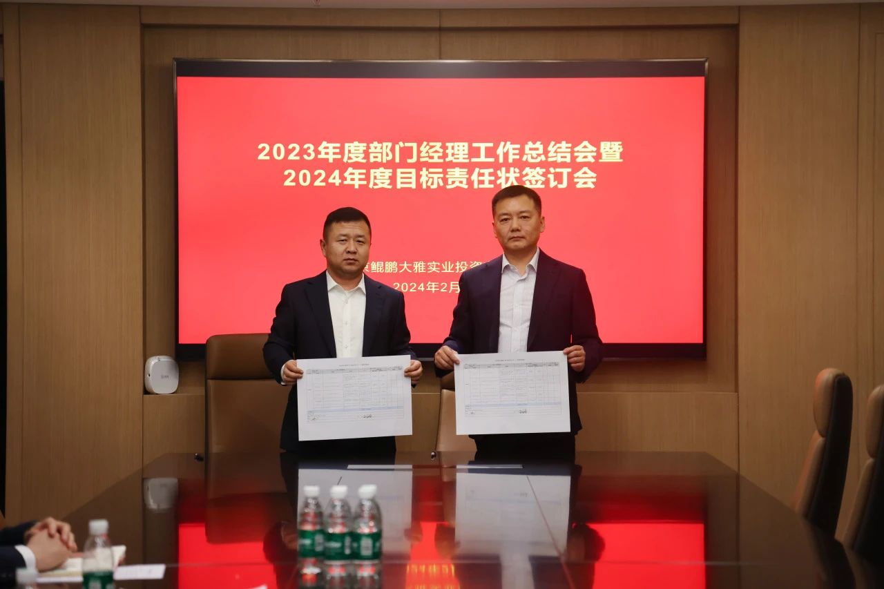 为积极有序推进各项企业经营管理工作,不断强化企业员工的责任和目标意识,进一步为新一年蓄力启航,2024年2月2日,北京鲲鹏大雅实业投资有限公司召开了2023年度部门经理工作总结会暨2024年度目标责任状签订会,公司党支部书记、总经理赵小波出席了本次会议。"
